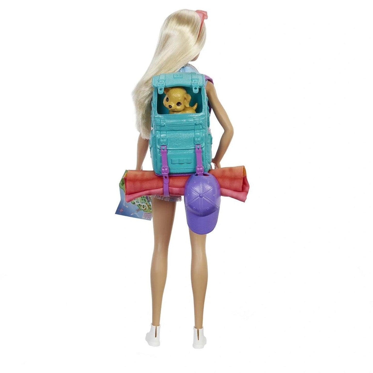 Join Barbie "Malibu" on her biggest adventure. Girls can take the Barbie "Malibu" doll and her dog on the ultimate camping trip, with over 10 hiking accessories that inspire all kinds of stories. Ready to start exploring? Clip on the Barbie doll's sleeping bag and fill the backpack with hiking essentials like a flashlight, map, binoculars, smartphone accessory, and much more. After a day of adventures, girls can tuck the Barbie doll and her puppy into the cozy sleeping bag to rest under the stars. The doll cannot stand on her own.