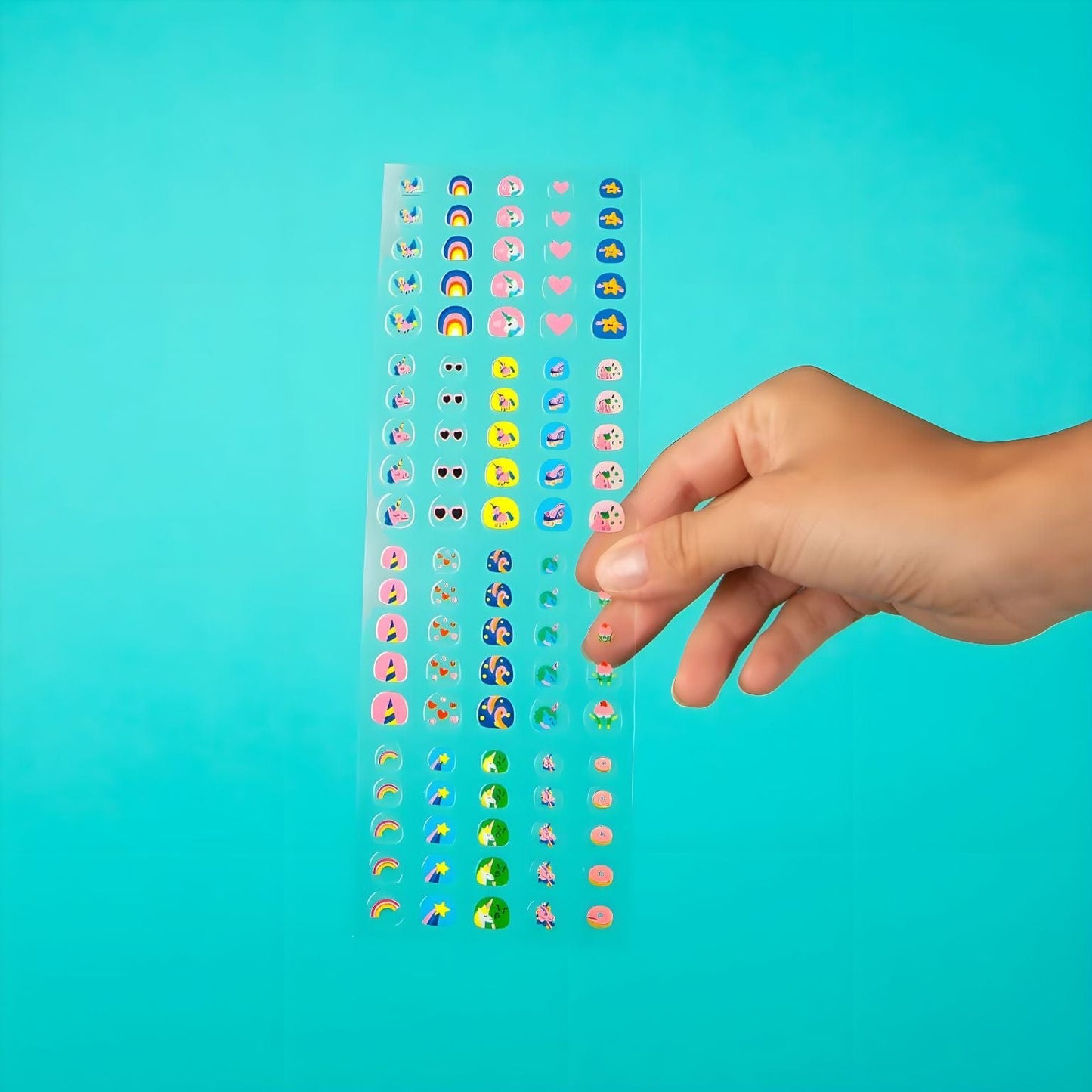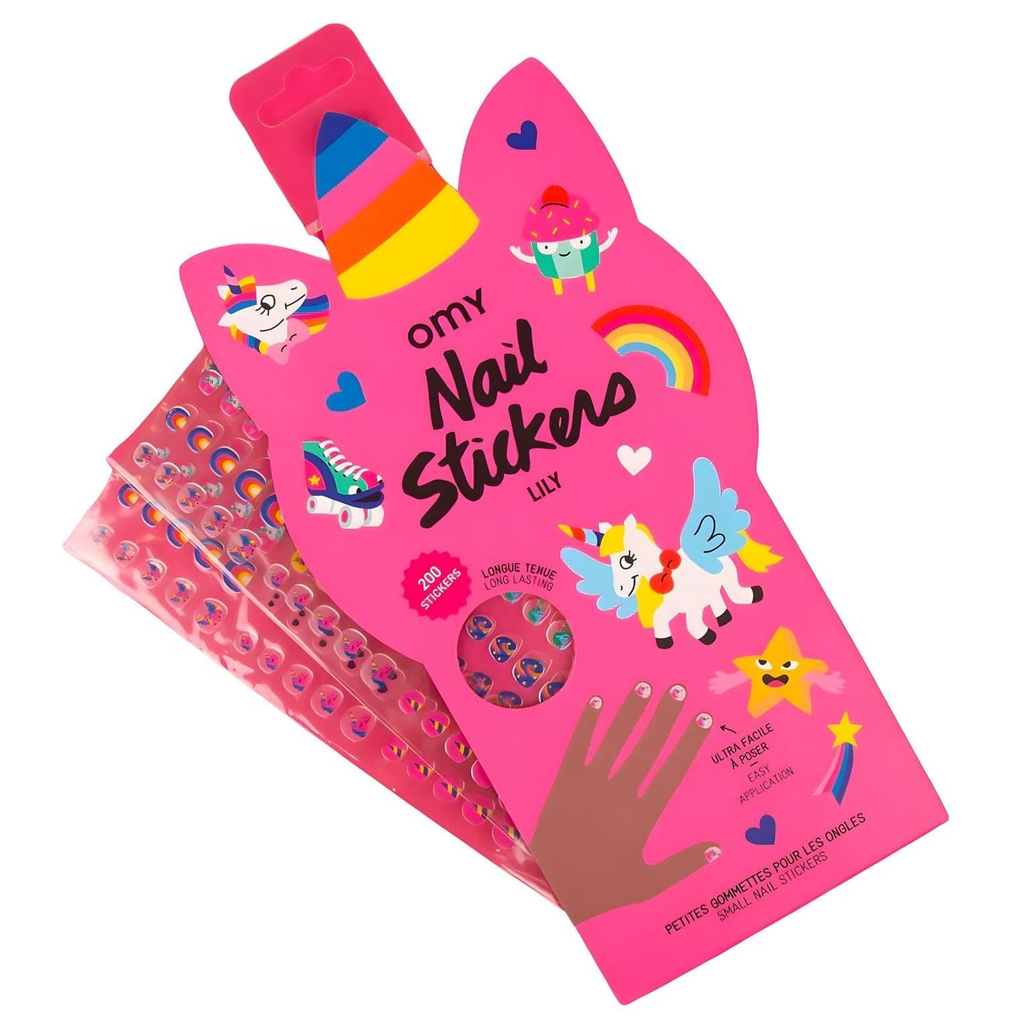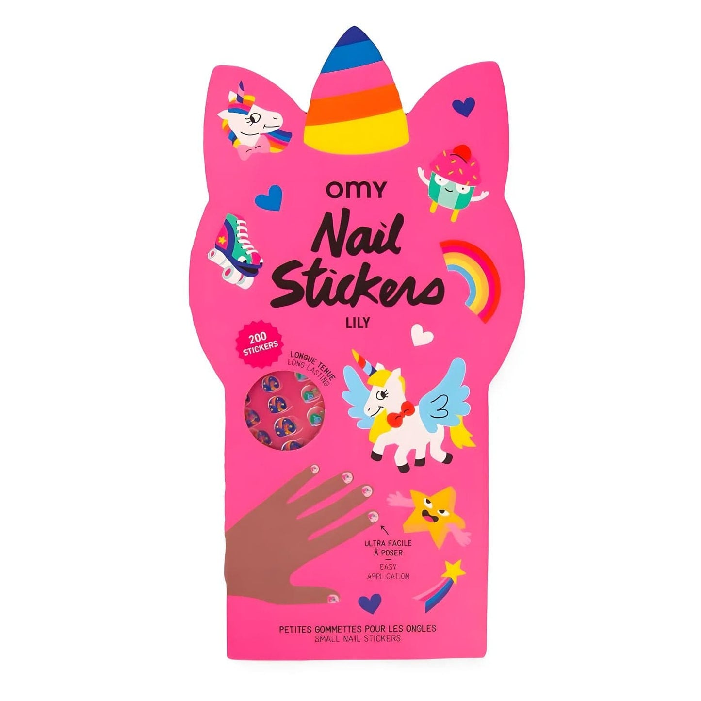 Pegatinas para Uñas - Unicornio Lily son ideales para una manicura divertida y segura, con 200 pegatinas fáciles de aplicar y diseños mágicos que duran. ¡Perfecto para niños que adoran expresar la creatividad con unicornios y arcoíris!