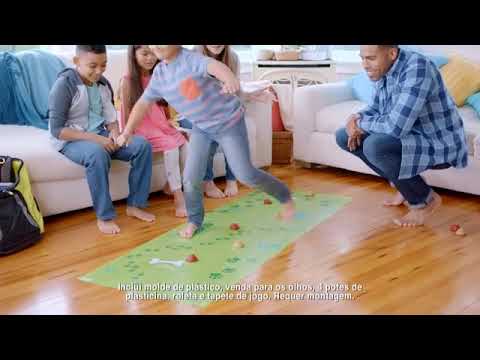 Equipado con una alfombra que simula un jardín y piezas de "caca" moldeadas en material seguro y no tóxico, el juego es adecuado para niños a partir de los 4 años, siempre que haya supervisión adulta.