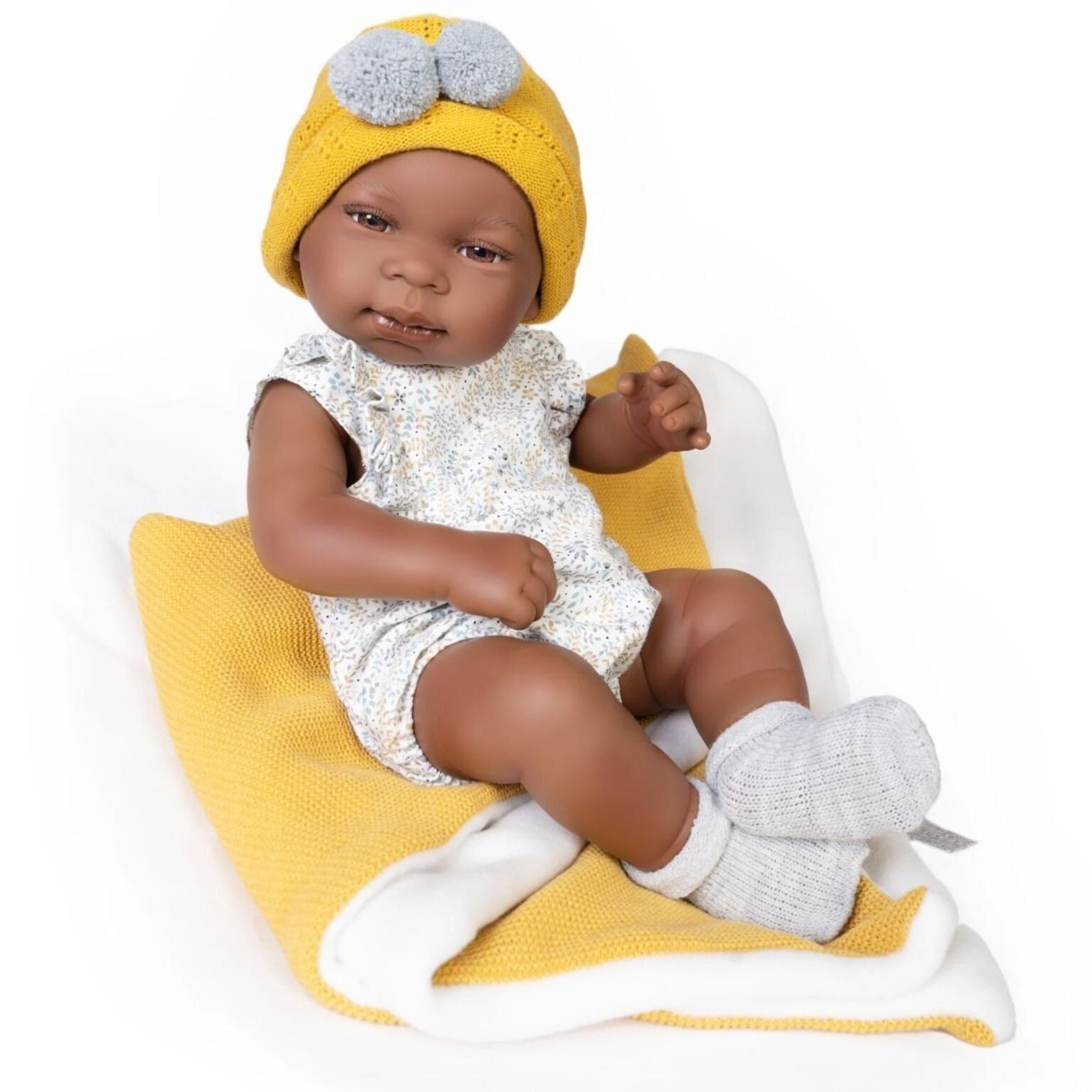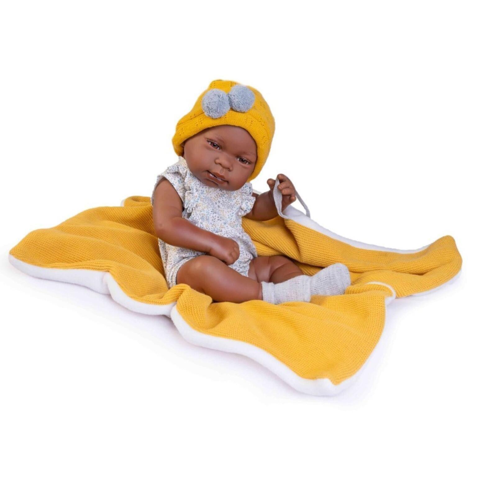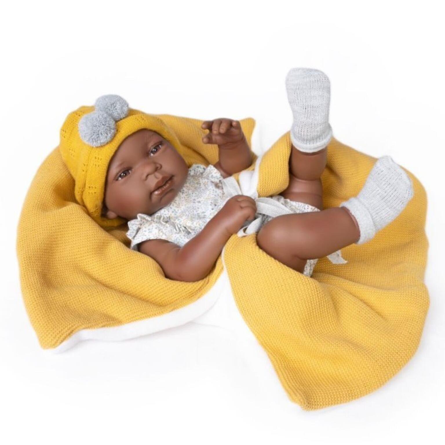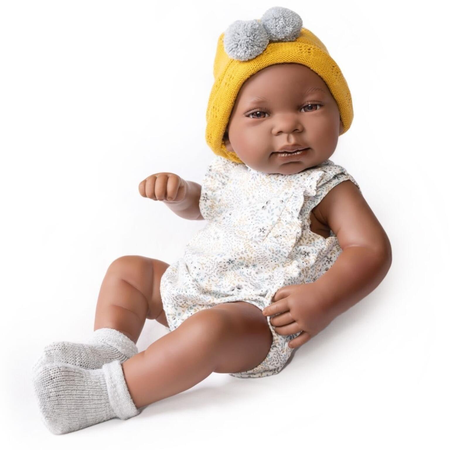 Olha como está lindo hoje este recém-nascido com o seu gorro cor de mostarda! Ele usa um macacão com babados que faz o seu tom de pele destacar-se. Balança-o com o seu cobertor e verás como ele relaxa e adormece nos teus braços. As suas roupas são confeccionadas com tecidos de "Algodão Orgânico", o que significa que não foram utilizados produtos químicos no seu cultivo e processo de produção, apenas naturais. O seu corpo é feito de vinil sexado macio e apresenta a cabeça, ombros e pernas articuladas. Tem 42 cm de altura e vai adorar ser mimado e mimado. Existe algo mais adorável do que um bebé ? Os recém-nascidos são a essência dos bonecos Antonio Juan. Um universo de doçura criado para acompanhar os mais pequenos na descoberta do mundo. Companheiros inseparáveis de longas jornadas de jogos a que não faltam detalhes nas suas feições ternas e na qualidade das suas roupas e acessórios. O peso da boneca Recém-nascida, de 42 cm, de Antonio Juan varia entre aproximadamente 1,10 e 1,30 kg, dependendo de como está vestida.
