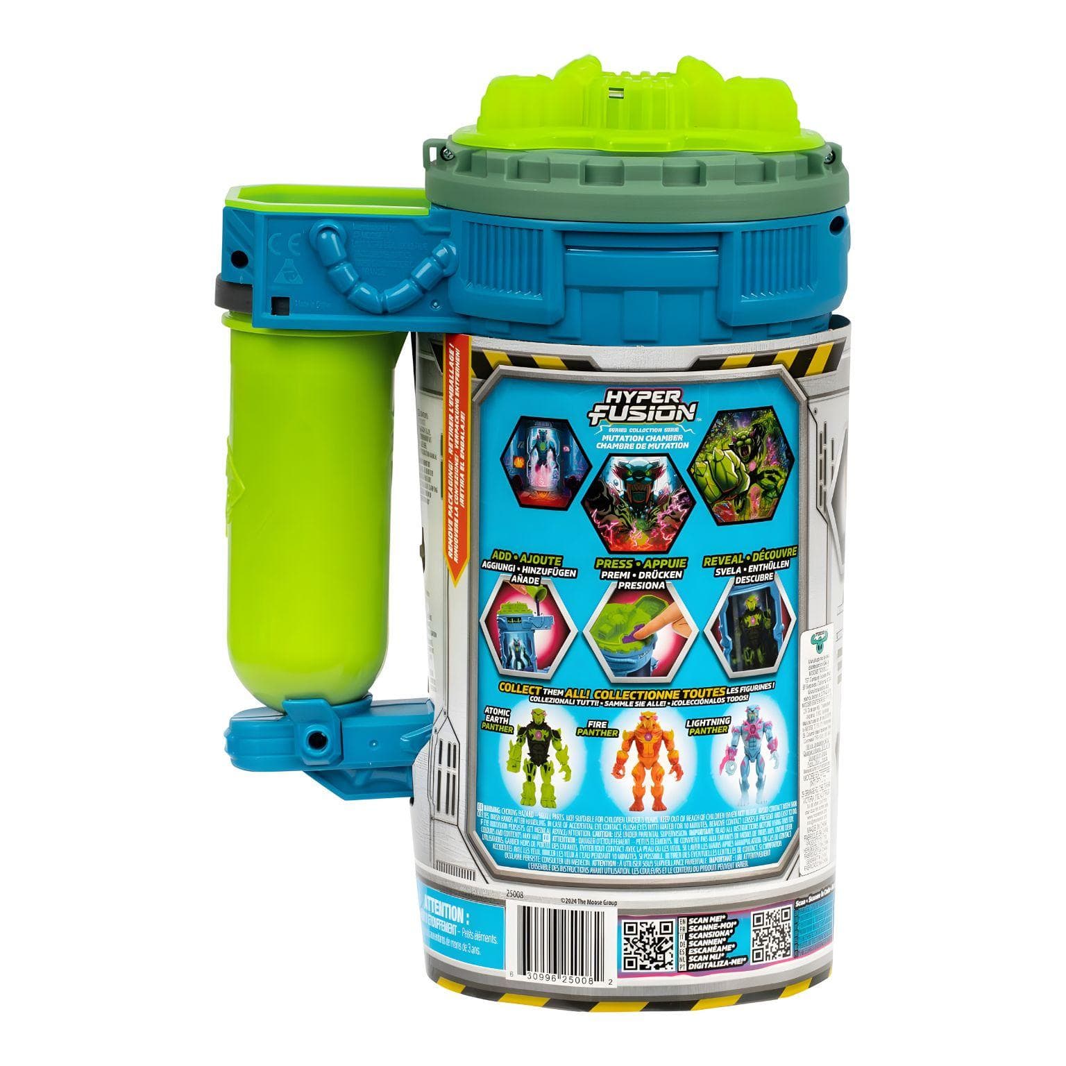Executa a experiência e revela o teu Atomic Earth Panther de 14 cm. Câmara de mutação de uso único, sem pilhas, perfeita para aventuras diárias.